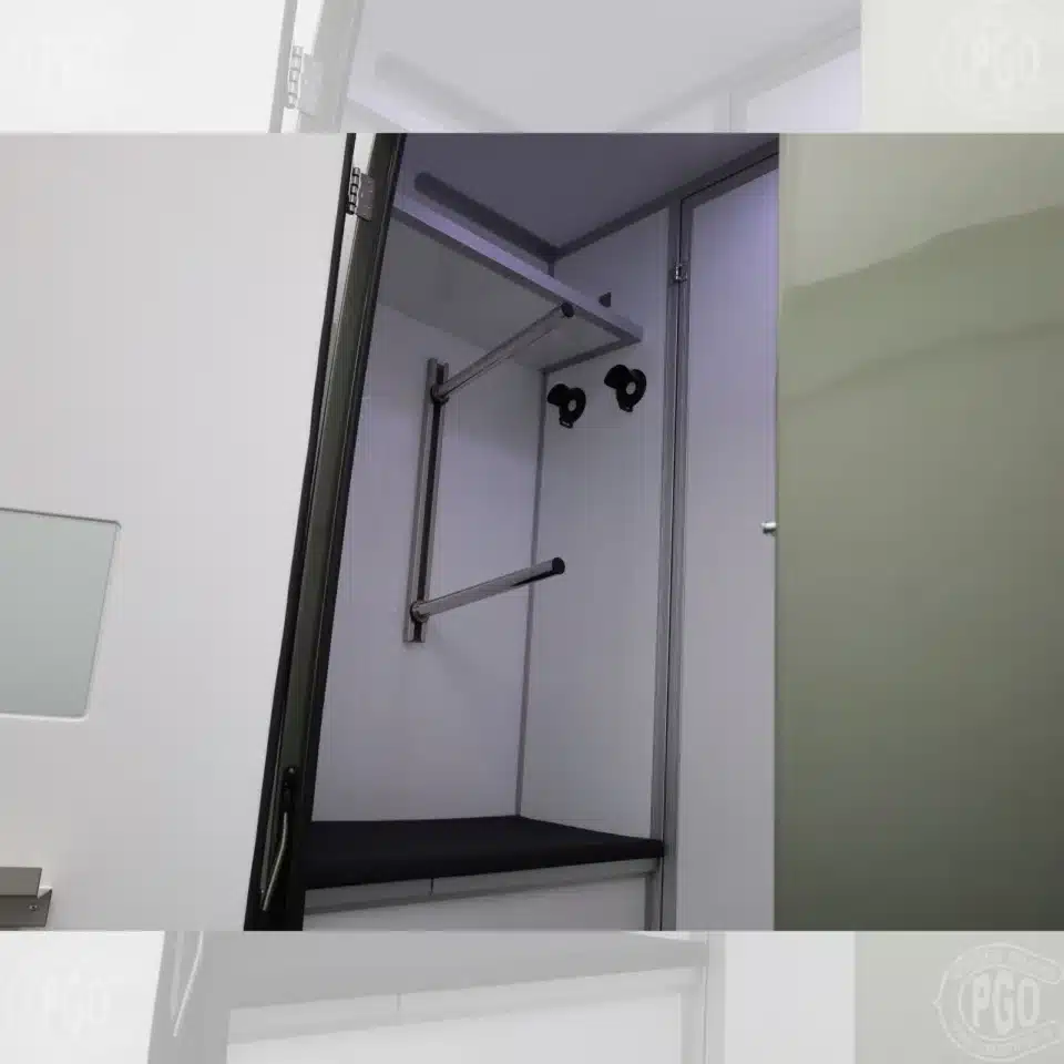 - Rangements : espace de rangement au-dessus de la cabine